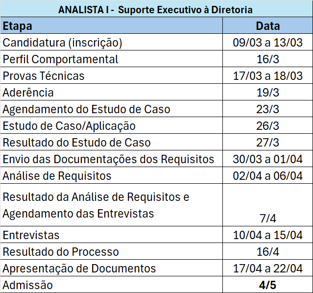PROCESSO SELETIVO PARA CONTRATAÇÃO DE ANALISTA I – Suporte Executivo à Diretoria | BRBCARD