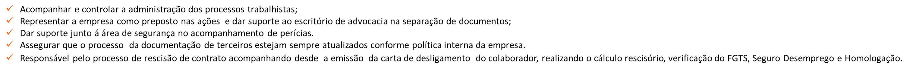 - Conhecimento em cálculos rescisórios e legislação trabalhista será um diferencial;