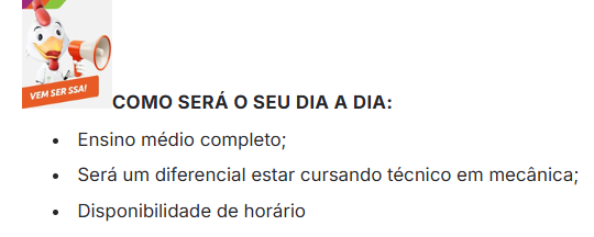 Descrição da vaga