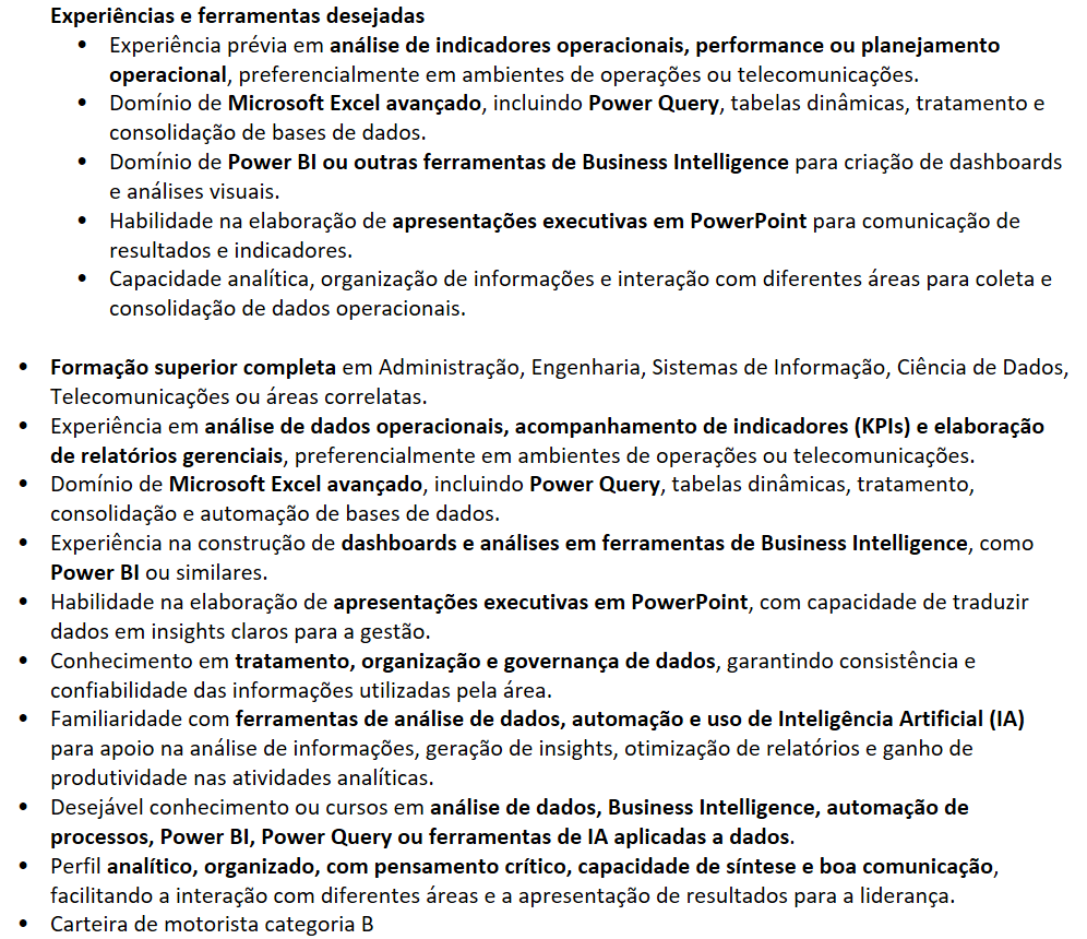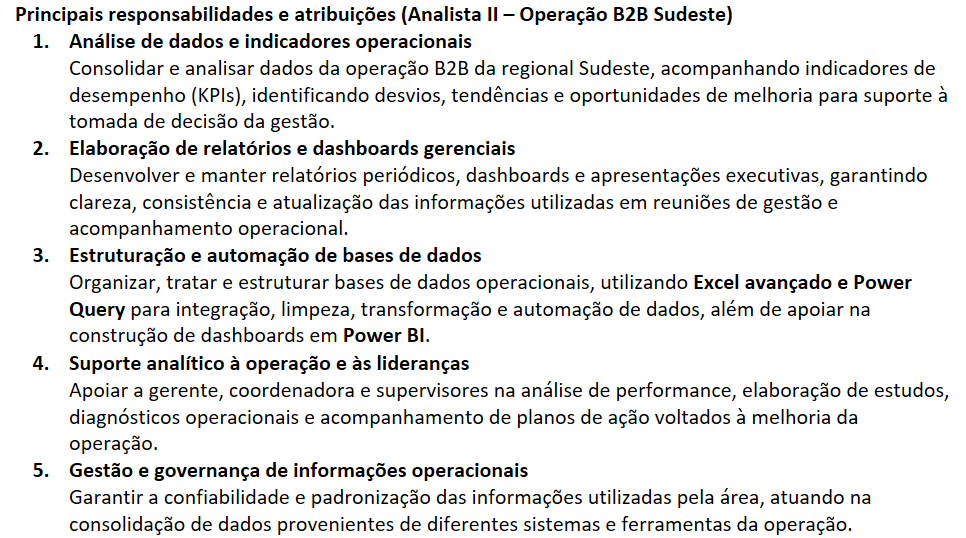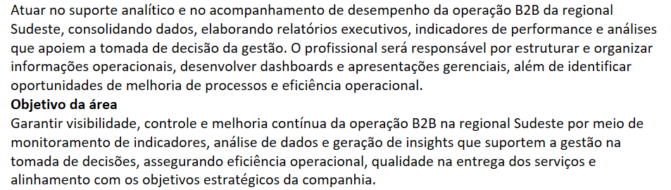Descrição da vaga