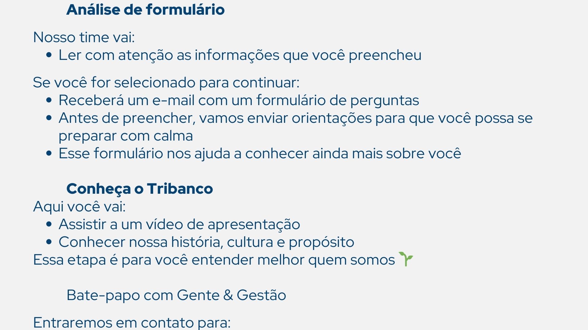 4 dias da semana no Tribanco, em modelo presencial, com jornada de 4 horas por dia no período da tarde;